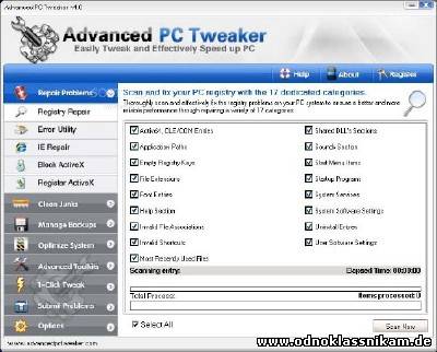 Advanced PC Tweaker - программа для оптимизации работы и изменения многих параметров операционных систем Windows. Как и многие подобные программы, позволяет чистить систему от ненужных файлов и прочего мусора, засоряющего жесткий диск вашего компьютера. Также программа выполняет множество функций по оптимизации вашей системы - устраняет ошибки системного реестра, чистит жесткий диск от мусора, позволяет управлять резервными копированием, на случай крах системы, и другие современные возможности, такие как управление автозапуском программ, удаление нежелательных приложений, стирание файлов с жесткого диска, без дальнейшей возможности их восстановления и многое другое. Особенности: - Очистка от ненужных файлов, засоряющих ваш жесткий диск - Сканирование и устранение ошибок системного реестра - Решение многих проблем, в том числе для реестра Windows, Internet Explorer, блокирование ActiveX и т.д. - Очистка от файлов-дубликатов - Создание резервных копий системы или системного реестра - Оптимизация производительности системы - Оптимизация оперативной памяти - Очистка конфиденциальных данных - Менеджер автозапуска программ - Менеджер удаления приложений - Уничтожение конфиденциальных файлов, без возможности их восстановления []  [/] Размер: 3,45 Мб Информация на восстановление: +1% Язык Интерфейса: English Лекарство: в архиве Платформа: Windows 2000/2003/XP/Vista/ 7 Cкачать Advanced PC Tweaker 4.2 Datecode 07.02.2012 :