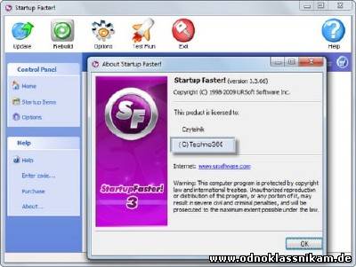 Утилита Startup Faster значительно ускоряет процесс загрузки операционной системы. Как правило, приложения, которые стоят в автозагрузке Windows, начинают одновременно запускаться, что приводит к резкому торможению компьютера. Startup Faster организует процесс загрузки системы таким образом, что приложения стартуют одно за другим. Результат такой организации - время загрузки заметно уменьшается. С помощью этой утилиты вы можете запретить запуск определенных программ или, наоборот, внести их в список автозагрузки. Добавляется возможность эксклюзивного контроля за всеми стартующими программами, удобный список просмотра, выбор предоставляется всего лишь одной галочкой, также процесс старта, который волнует вас, можно совершенно спокойно уничтожить. При возникновении ошибки можно восстановить произведенные изменения на момент последнего старта Windows. Поможет обнаружить убитые ссылки в реестре, исправить их или просто удалить, всё на ваш выбор. Особенности: - [PRO]" means this feature is only available in Pro version of Your Uninstaller!. - Completely remove any application installed. - Deep scan of registry and entire disk for unused registry entries and files. [PRO] - Remove programs that could not be removed by Add/Remove Program. [PRO] - Uninstall screen savers. [PRO] - Shows all applications installed on your computer with customized views. Built-in Disk Cleaner helps you find and remove unnecessary files on your disk to save space and make computer faster! [PRO] - Built-in IE Context Menu Cleaner, cleans the context menu of Internet Explorer. [PRO] - Built-in Startup Manager, take full control of Window startups. [PRO] - Built-in Start Menu Manager helps you keep your Start Menu clean. - Get the applications detail info even if it hide itself in deep directory, especially useful for finding out "Spy" applications. [PRO] - Backup/restore installed-applications information. - Uninstall with SINGLE drag-drop! Just drop a file on Your Uninstaller! icon on the desktop to see what happens! [PRO] - List installed applications with appropriate icons(same as you see in the Start Menu), you can easily find the application you want to uninstall. - Powerful search feature allows you quickly find the program you are about to uninstall. - Automatical detectection of invalid installations and removing them with one click. - Force removal of uninstall related entries in the registry(care to use!). [PRO] - Lighting speed at startup, 5-10 times faster than Add/Remove Program of Windows XP! - View all details of an certain application installed on your computer. - Export programs list to file or printer. []  [/] Размер: 8,06 Мб Информация на восстановление: +1% Язык Интерфейса: English Лекарство: в архиве Платформа: Windows 2000/2003/XP/Vista/ 7 Cкачать Startup Faster! 3.6.2011.14: